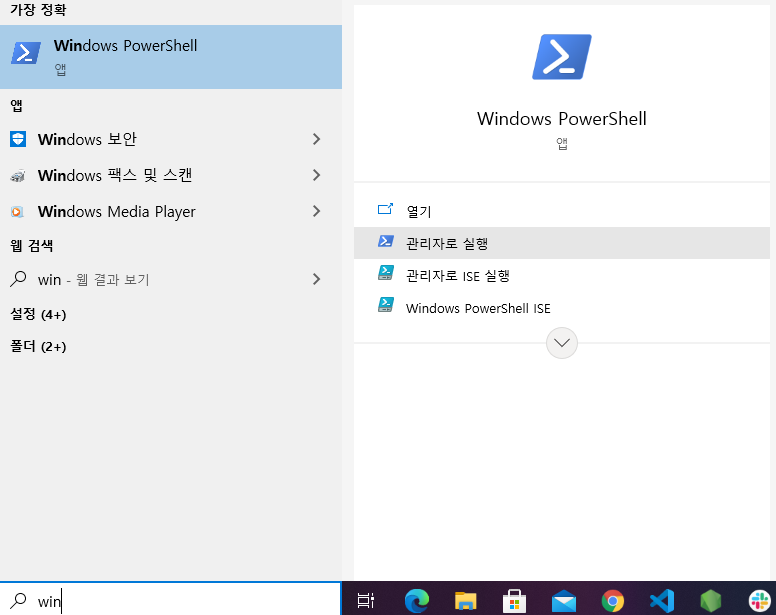 3. powershell 관리자 모드로 열기