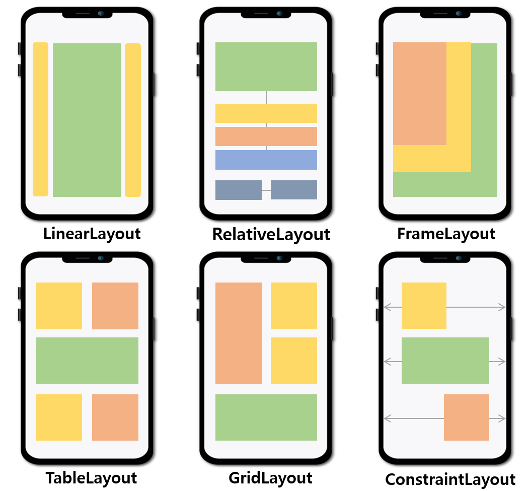 레이아웃 클래스마다 포함된 뷰의 정렬 규칙이 다른 것이지, 특정 화면을 특정 레이아웃으로만 구성할 수 있는 건 아니다. 화면을 작성할 때 무조건 특정 레이아웃을 사용해야 완성할 수 있는 경우도 있지만, 대부분 개발자의 선택에 따른다.